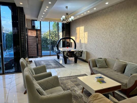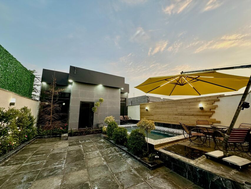 همه چی عالی بود رفتار میزبان خوب آب استخر شفاف و تمیز و تمام امکانات موجود و سالم بودن ما هیلی راضی بودیم