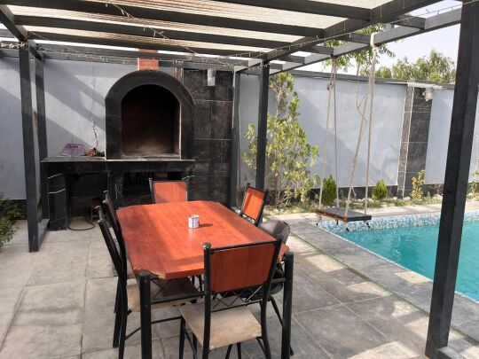۳۵۰متر ویلا ،۱۳۰متر بنا لوکس مدرن ،محوطه سازی الاچیق ،باربیکیو ،استخر ۴فصل ،دوخواب مستر سیستم صوتی ، تلویزیون ، یخچال ، گاز رو میزی ، اشپز خانه فرنیش ،فوتبال دستی ،تخته ،کولر ابی ، پکیج بخاری ، امنیت عالی ، تا درب ویلا آسفالت ،فاصله تا فروشگاه با ماشین ۳ دقیقه