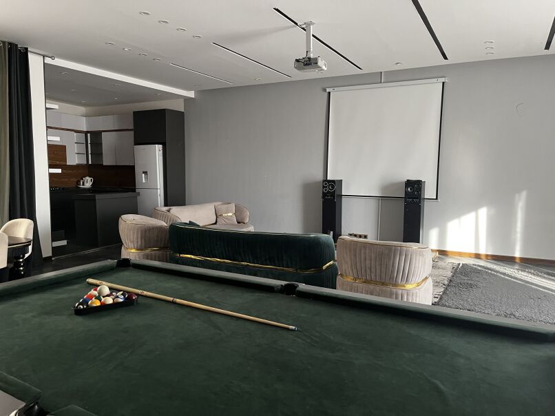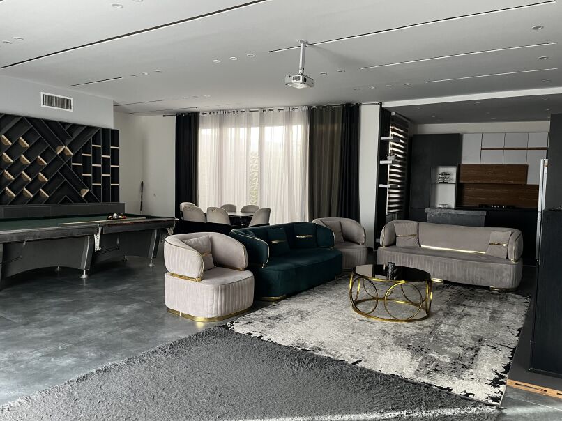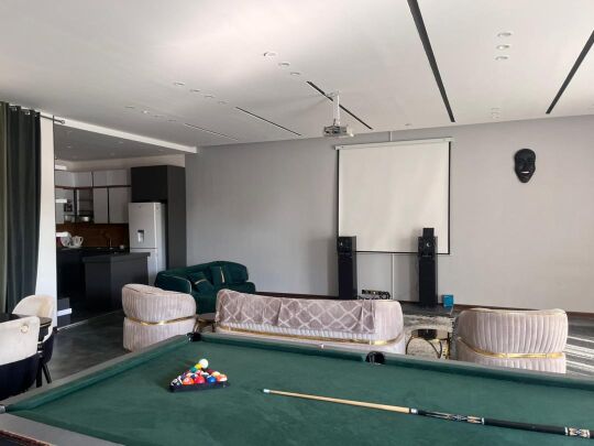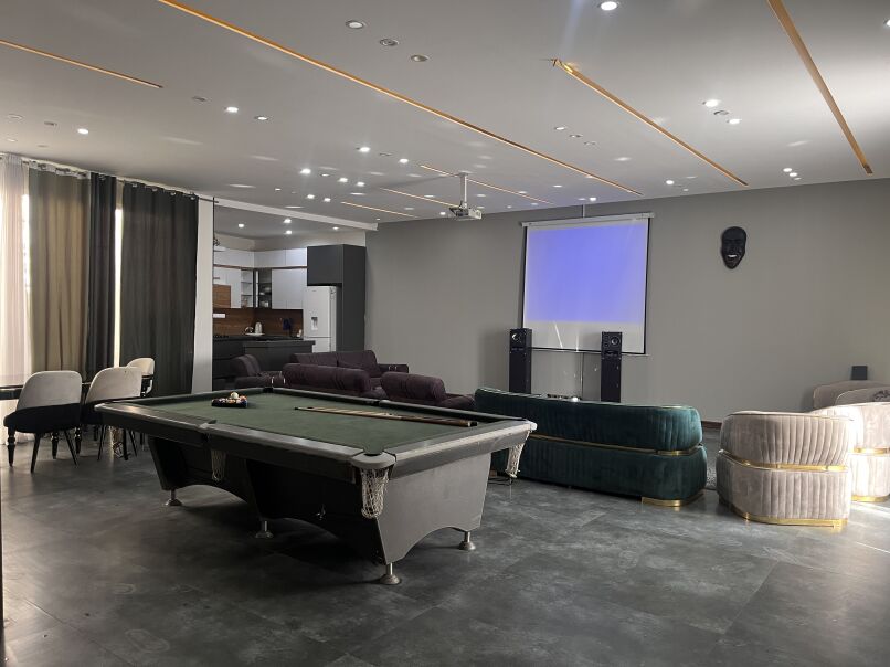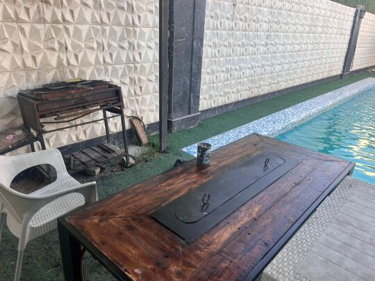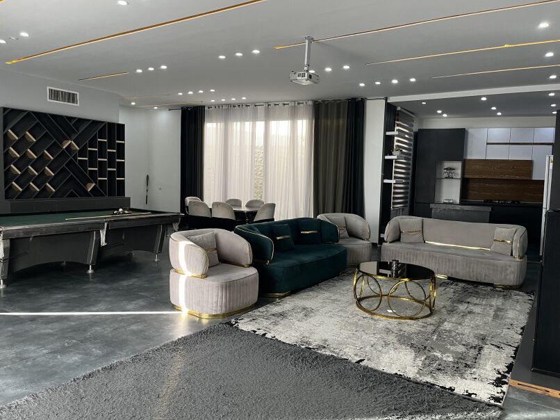 ۶۰۰ متر محوطه ۱۸۰ متر بنای مدرن دوخواب هر دو مستر دارای استخر روبازآبگرم بیلیارد سیستم صوتی بلوتوثی سیستم تصویری ویدئو پرژکتور چتر و میز صندلی آلاچیق و باربیکیو شهرکی با امنیت بالا دارای جای پارک چهار خودرو